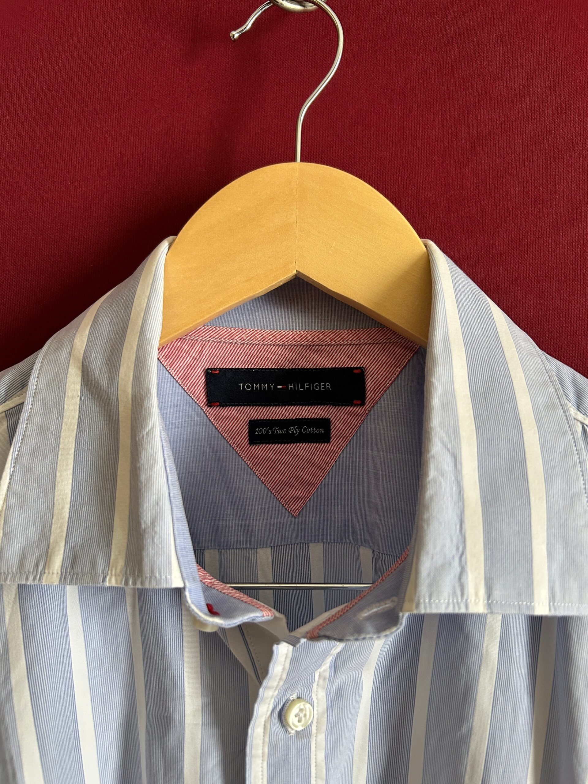 Camisa listrada azul e branco 100% algodão da marca Tommy Hilfiger. Tamanho XL na etiqueta. Está em perfeito estado.
